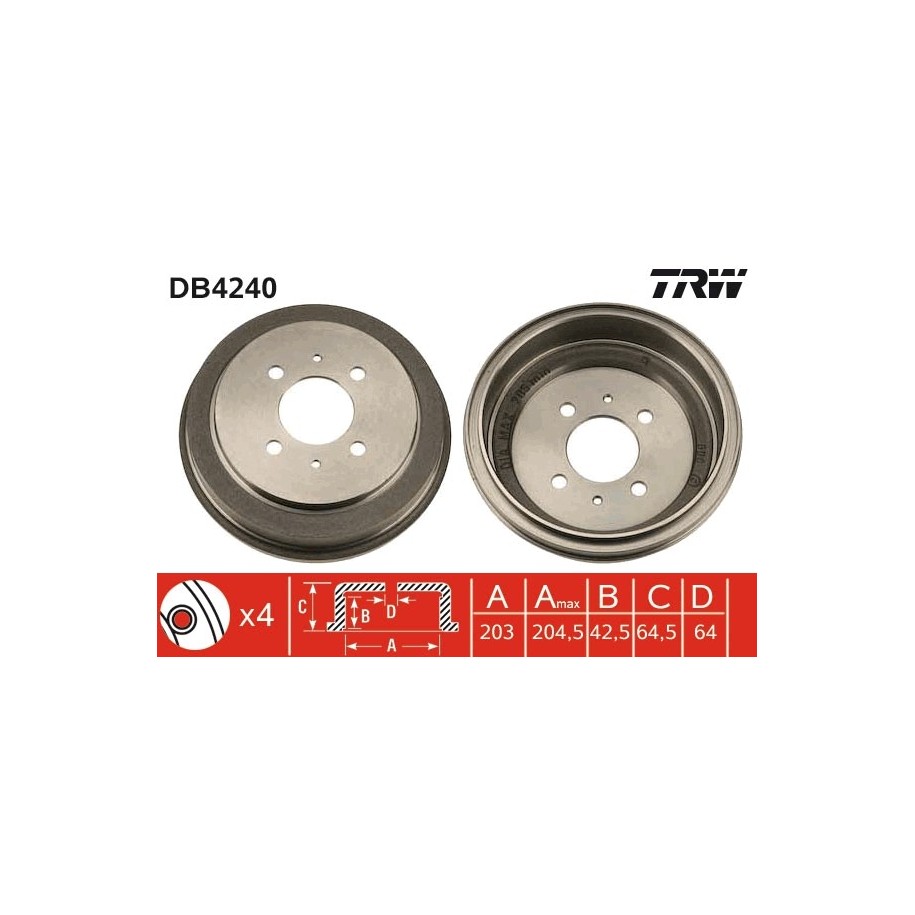 Ce Tambour de frein est une pièce équivalente OEM, compatible avec la référence constructeur , fabriquée par TRW conformément aux spécifications techniques d’origine. Il est destiné à offrir fiabilité et durabilité dans le cadre d’une réparation ou d’un remplacement standard.