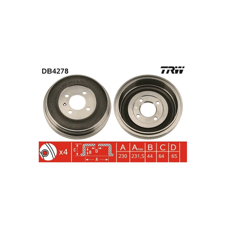 Tambour de frein TRW DB4278 pour VW GOLF, JETTA OE 191609617