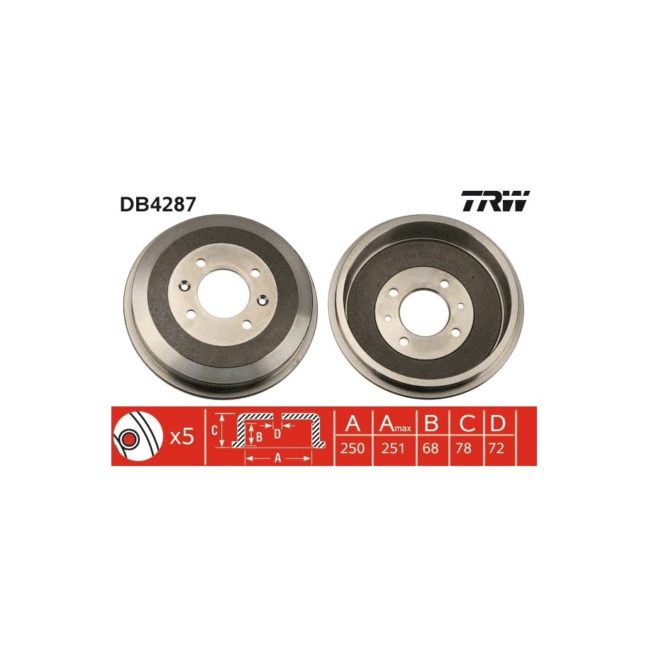 Tambour de frein TRW DB4287 pour CHRYSLER, DODGE, PLYMOUTH OE 4877263AD