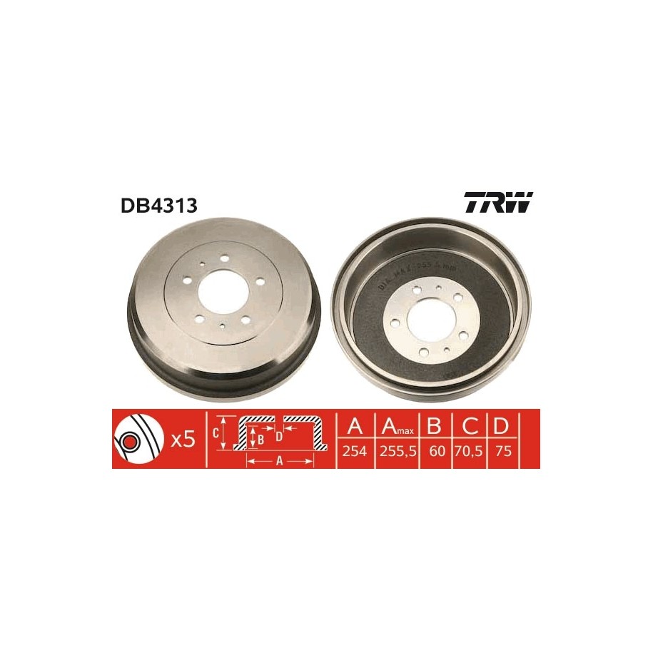 Tambour de frein TRW DB4313 pour MITSUBISHI, SOUEAST OE MB193595