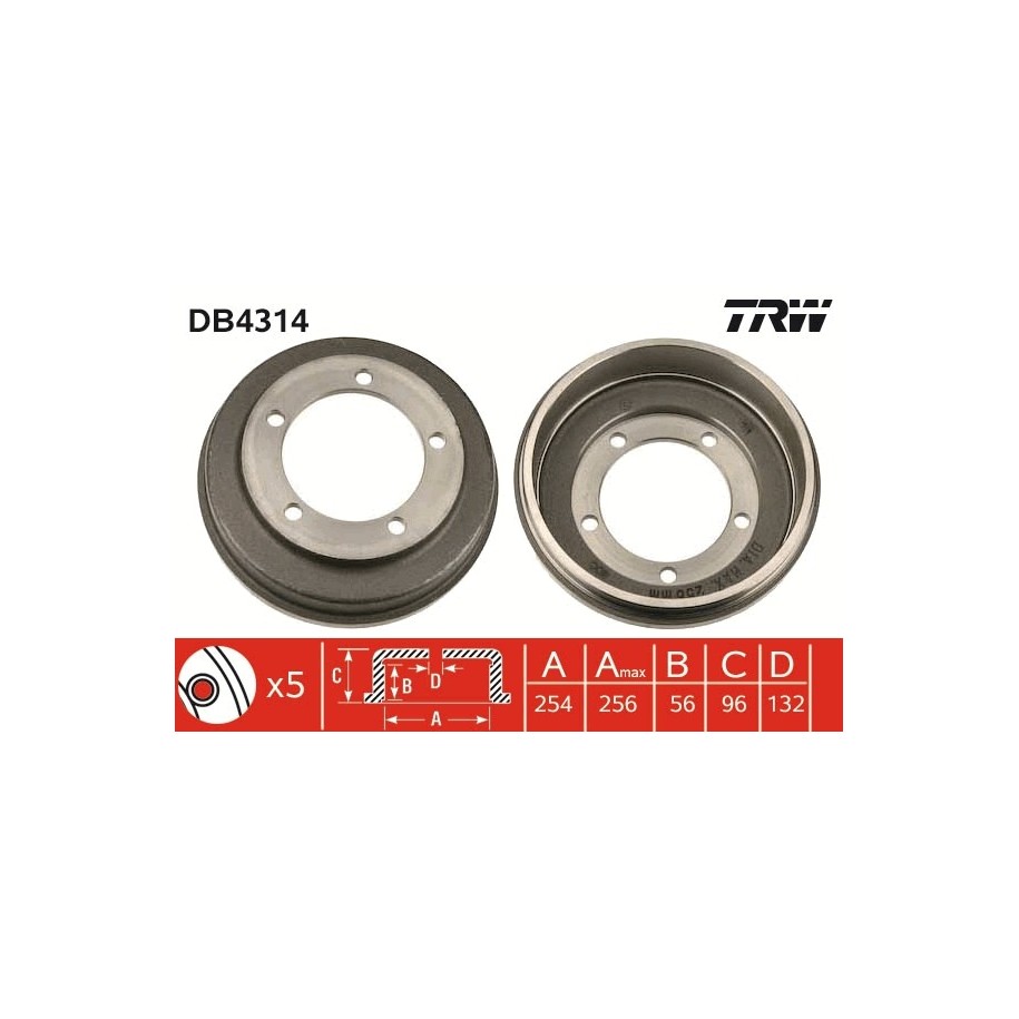 Produit : Tambour de frein TRW DB4314 pour FORD TRANSIT OE 4540218